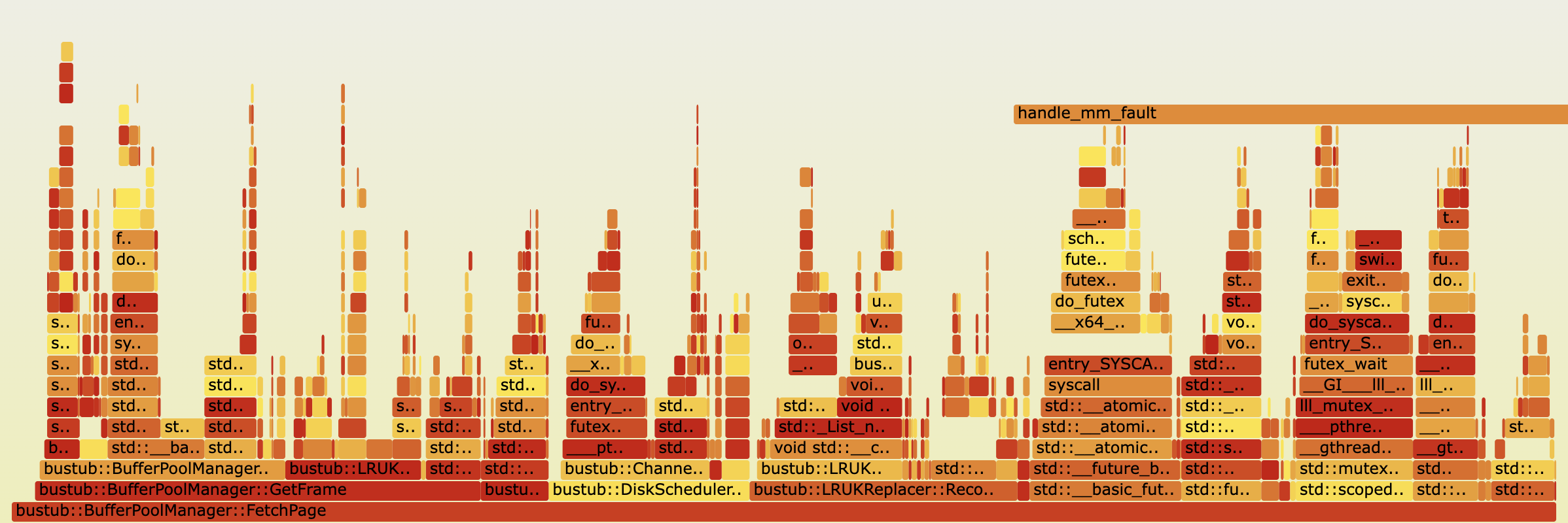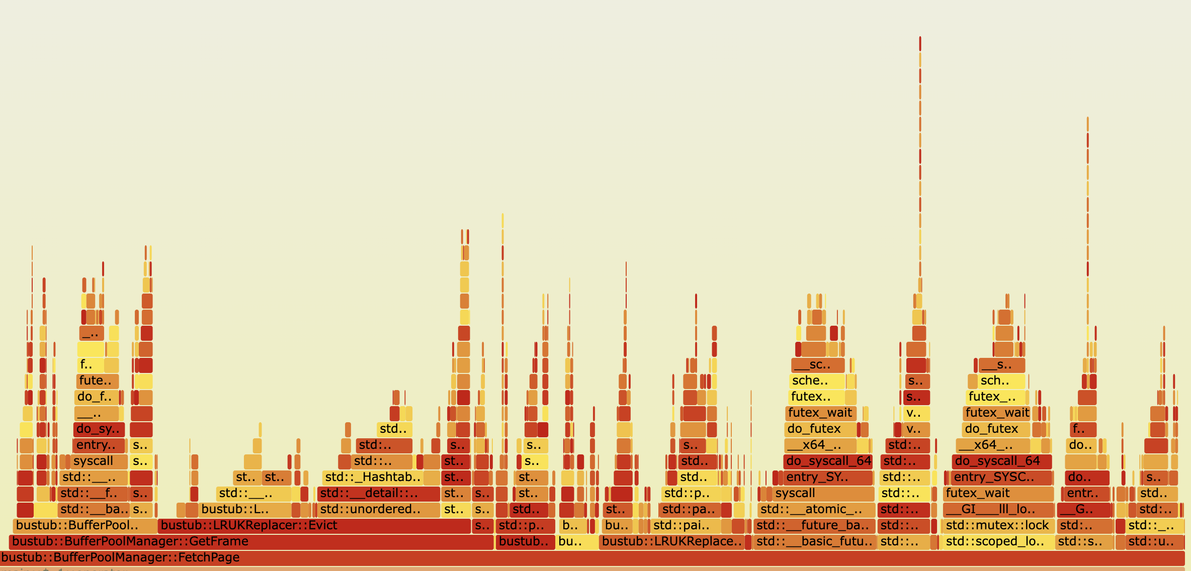 2. To achieve true parallelism in disk scheduler, you will also need to allow your buffer pool manager can handle multiple `FetchPage` requests and evicting multiple pages at the same time. You might need to bring in a conditional variable in your buffer pool manager to manage free pages.