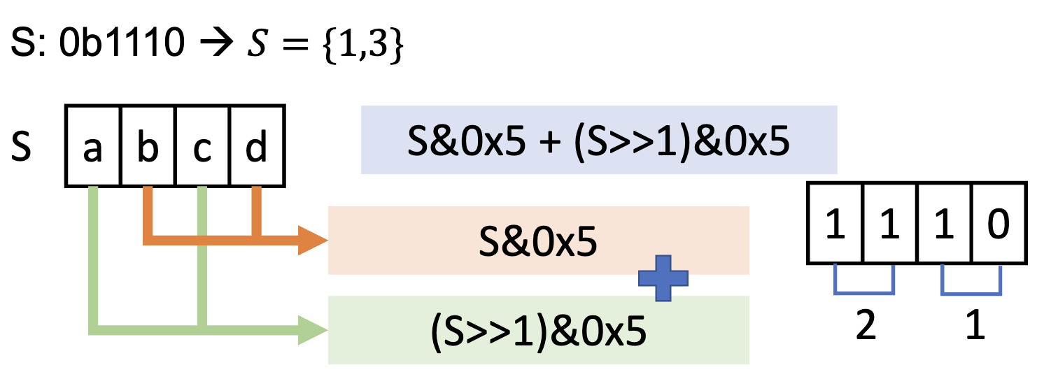 S = (S & 0x0F0F0F0F) + ((S >> 4) & 0x0F0F0F0F);