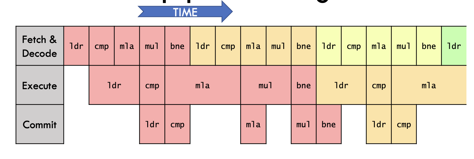 需要更多的取指单元,执行单元,提交单元并行地做,一般情况下可以认为取指单元和提交单元是over provision的